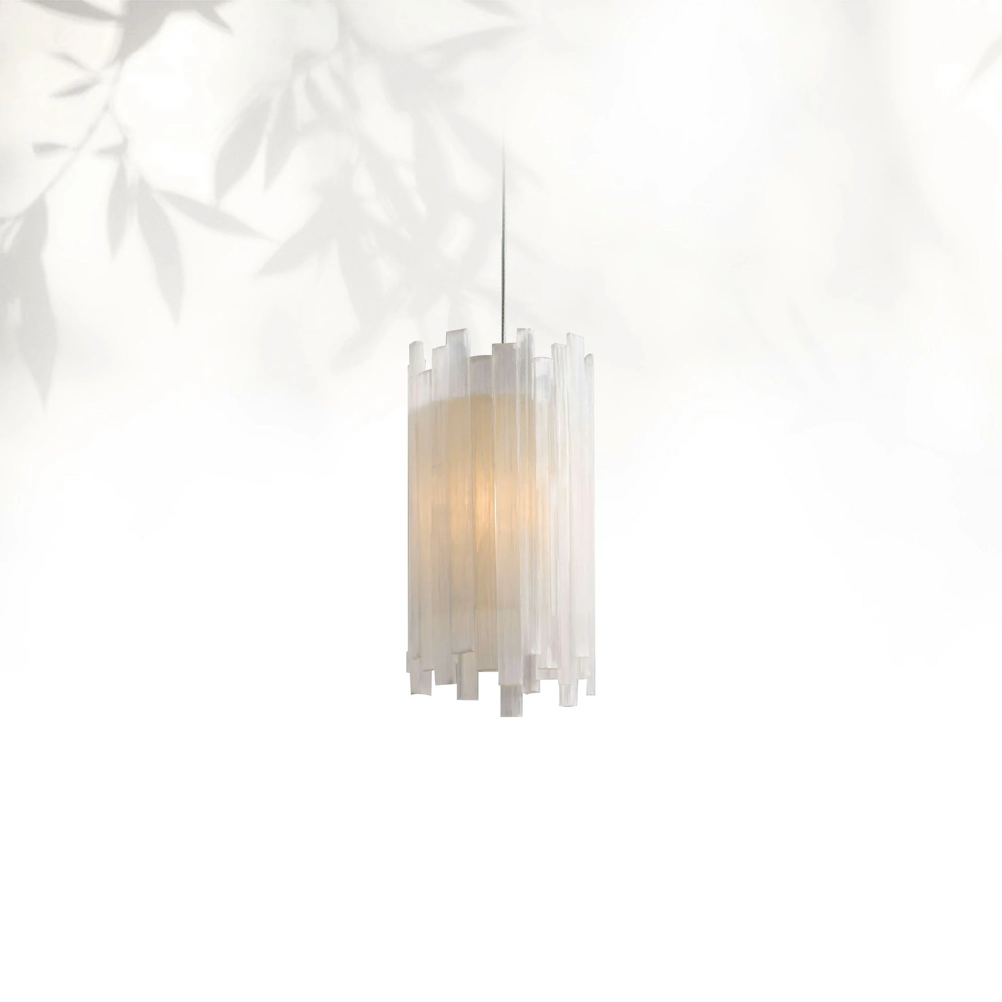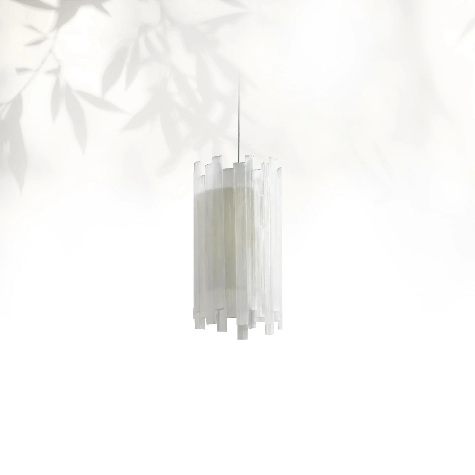 - Frame & Shade: Made from PVC cables with a silver finish and clear protective lacquer; pendant shades crafted from natural selenite stone. Each piece varies in color and pattern due to natural materials