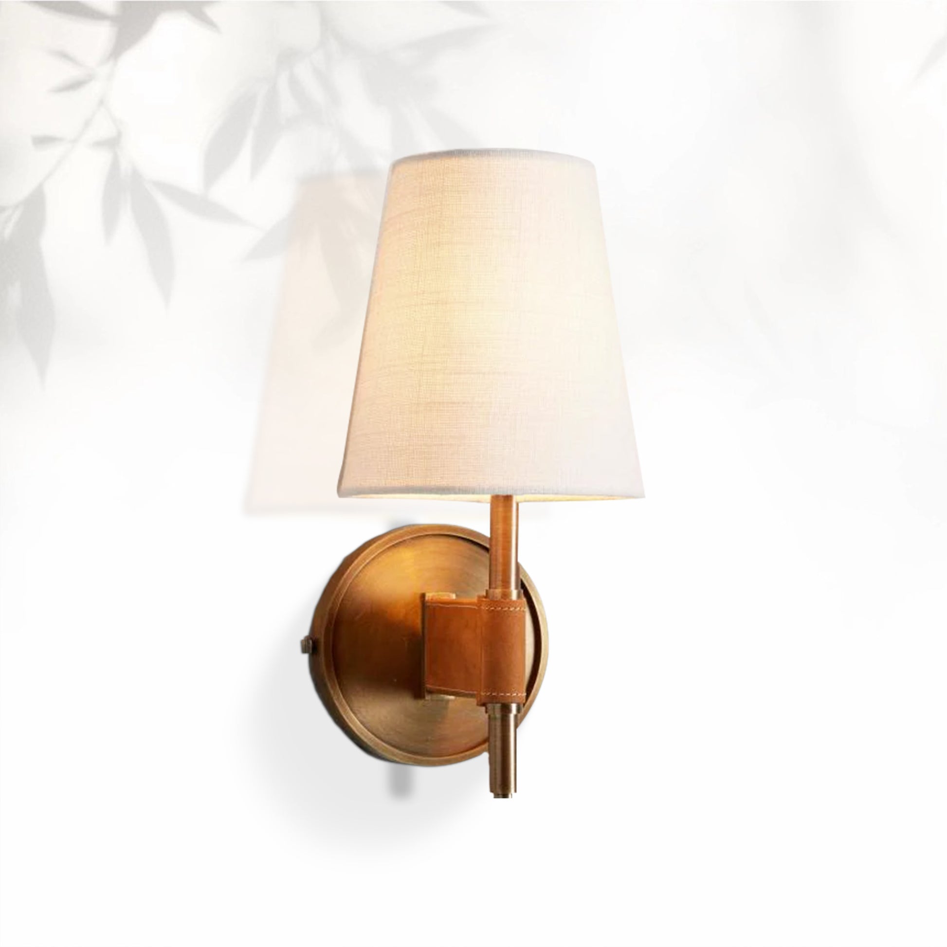Inspired by iconic midcentury modern design, our Hasting Lighting Collection artfully blends mixed materials for a timeless statement. Antiqued brass bases are accented with hand-stitched tan leather details and topped with crisp white linen shades, creating a look of refined elegance that elevates any space.