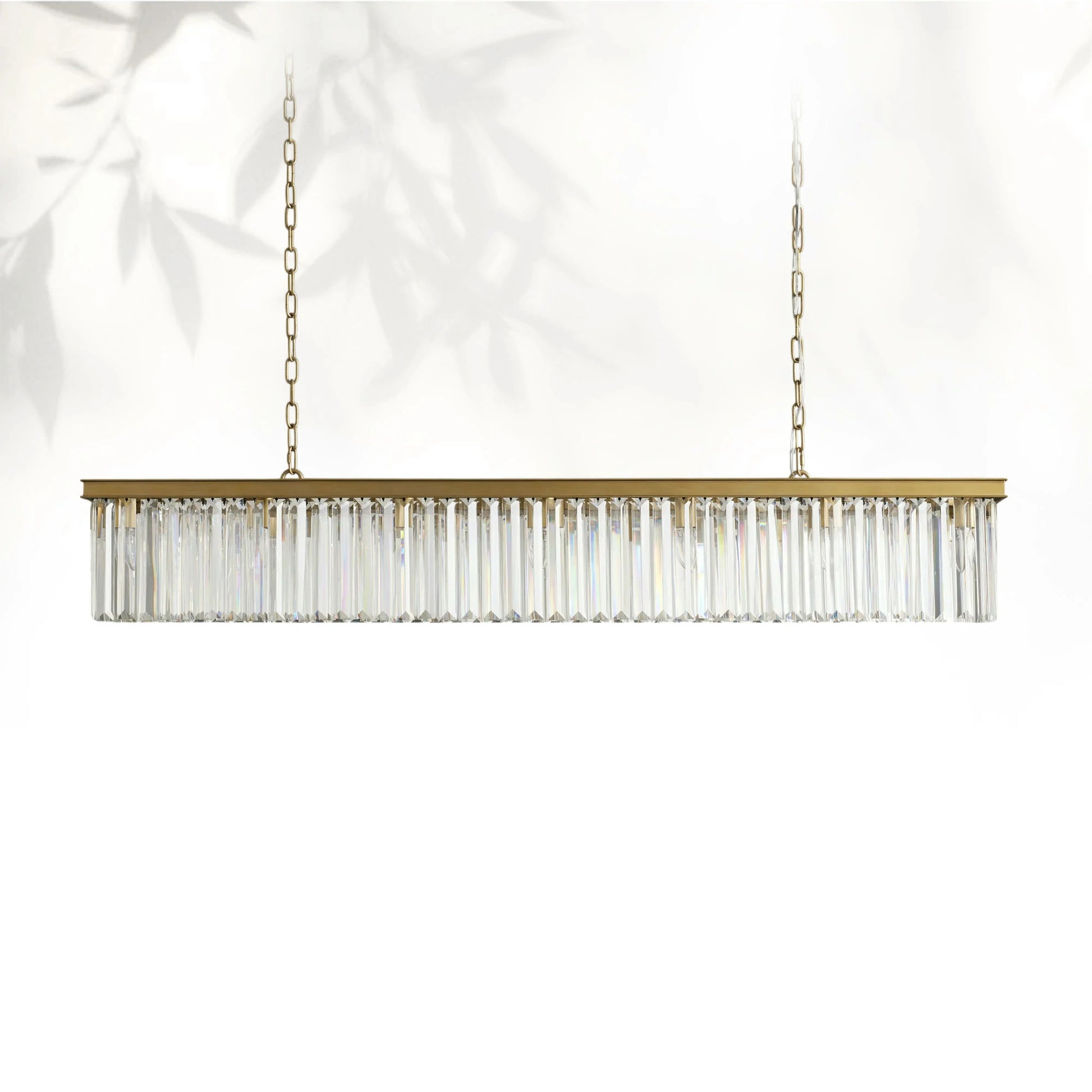 The Leylind Lighting Collection brings the glamour of 1920s French Art Deco to life, featuring layered rows of faceted glass prisms set on a rustic iron frame. A perfect blend of vintage elegance and modern craftsmanship.