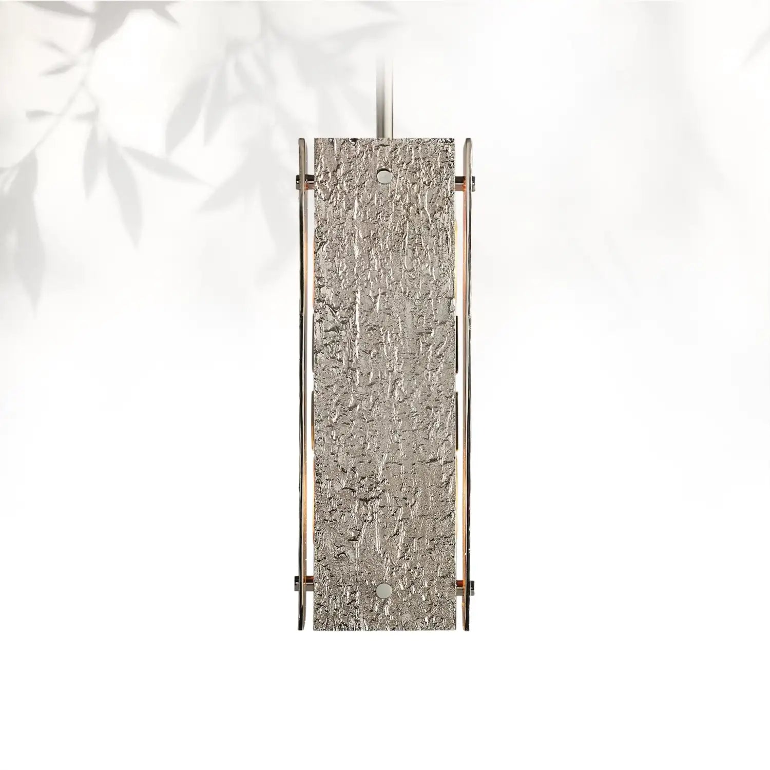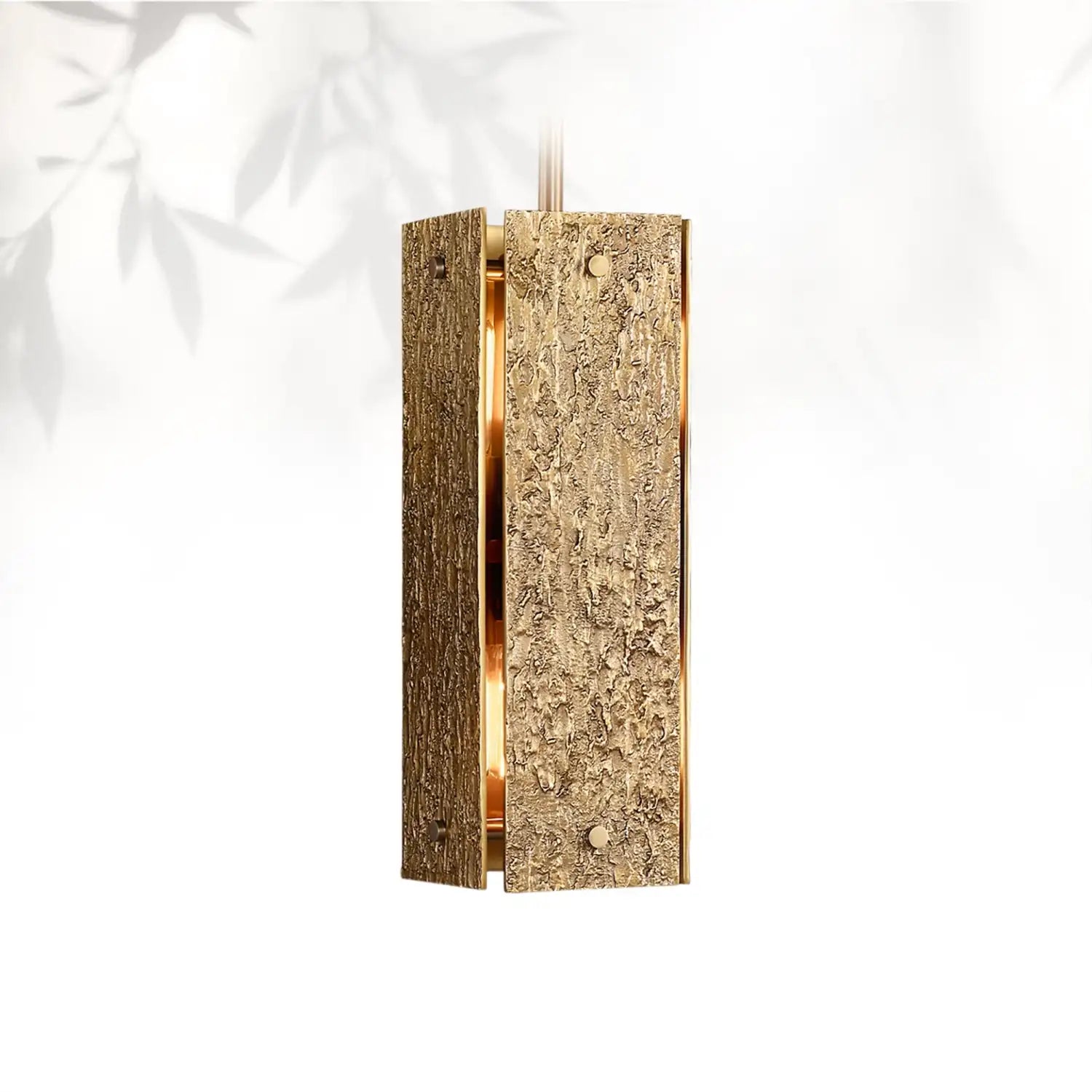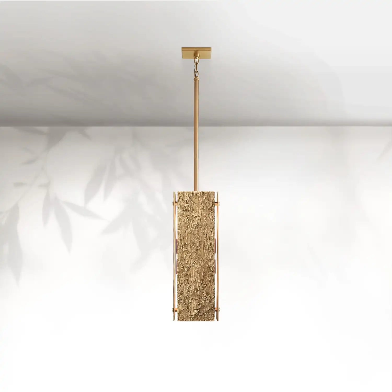 The focal point of the Voury collection of modern sculptural lighting, solid brass is cast in hand-formed molds to achieve intricate, sensual textures that shape the minimalist geometry of the surface, and its chandelier glow is moody and atmospheric, showcasing the beauty of modern modern living rooms.